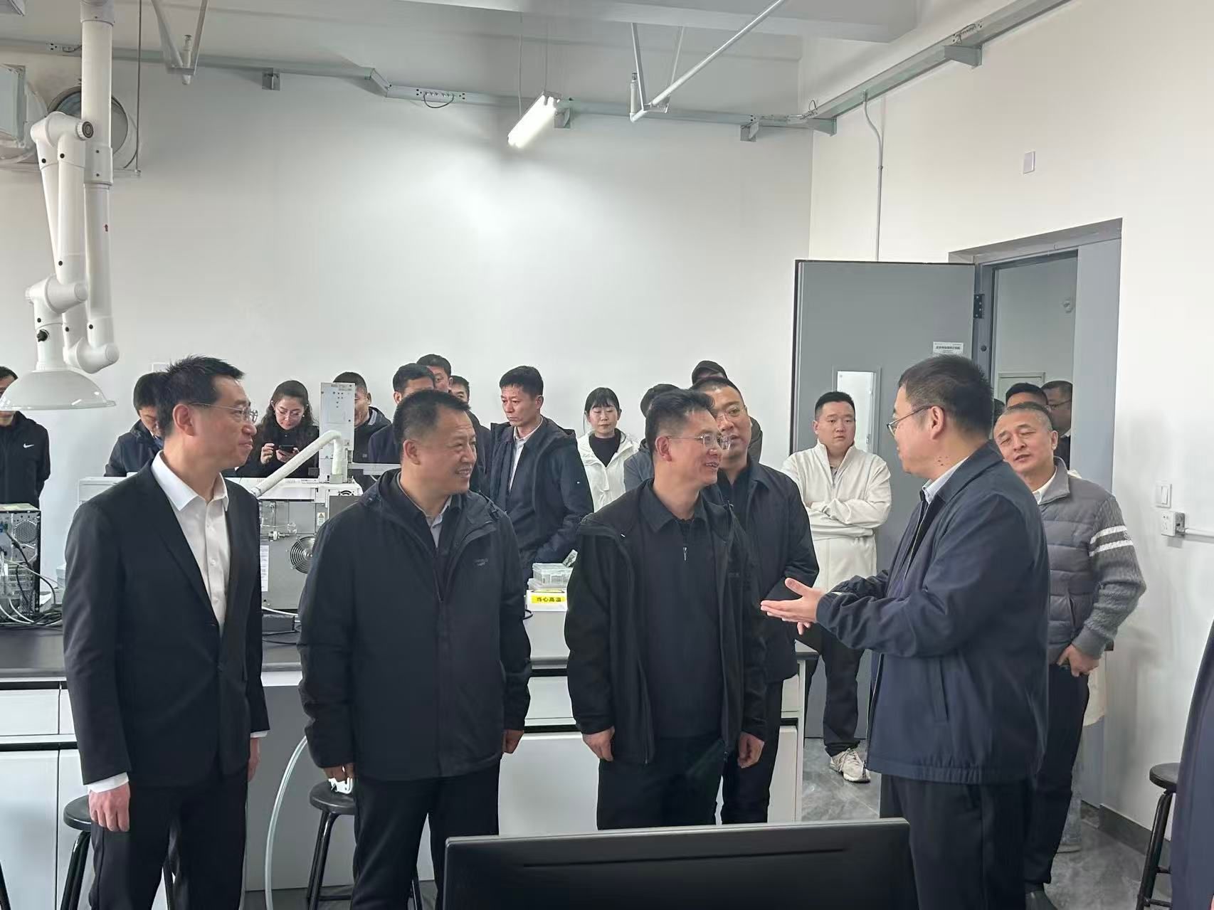 考察团一行先后走访了农学院智慧农业实验室、食品学院大豆科研平台,实地参观并了解了我校在智慧农业、农产品精深加工、食品安全监测、功能性食品创制等领域的代表性成果及技术应用场景。我校科技人员介绍了学校在智慧农业建设、食品科学研究、大豆深加工平台建设、关键技术创新、成果转化及产业化路径等方面的工作经验,并就企业关心的技术痛点、产学研合作模式与转化机制进行了深入交流。