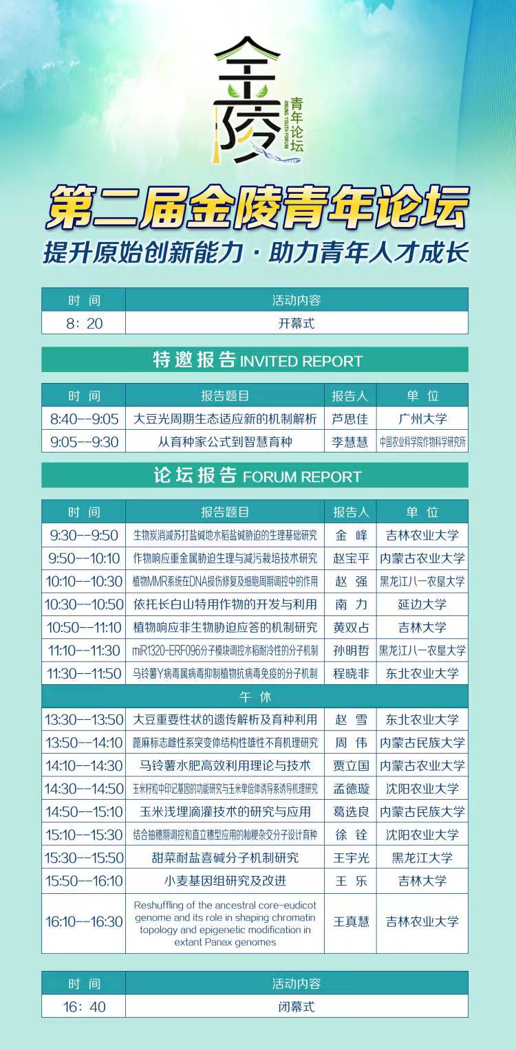 论坛旨在为东北地区高校的作物学及相关学科中青年教师搭建学术交流平台、加强青年教师骨干的培养、拓宽学术发展视野、提升科研创新能力,促进青年教师成长,推动农业学科发展。论坛设特邀报告和论坛报告两个环节。论坛报告将评选出一等奖2人,二等奖3人,其他为三等奖。现将报告内容通报如下:
