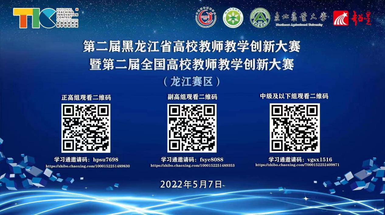 由中国高等教育学会指导,黑龙江省教育厅主办,东北农业大学承办,黑龙江省超星信息技术有限公司协办的第二届黑龙江省高校教师教学创新大赛暨第二届全国高校教师教学创新大赛(龙江赛区)将于5月7日和5月8日进行省级现场评审比赛,全省22所高校70名优秀参赛教师同台展示。为充分发挥“以赛促教、以赛促学”引领示范作用,助推教师教学创新和能力提升,比赛全程网络直播,现就我校线上收看事宜通知如下: