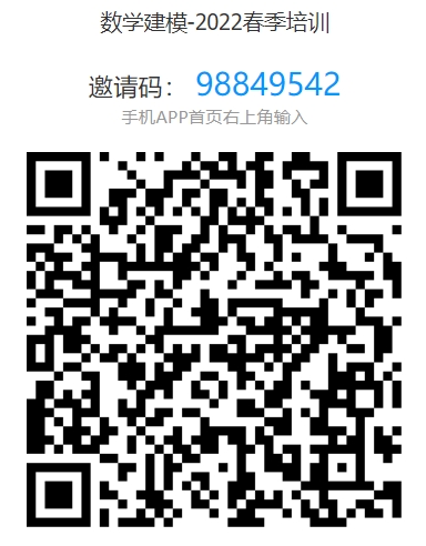 有意参加培训的同学请于3月13日17点前报名。(使用超星学习通APP扫描下方二维码),加入到学习通“数学建模-2022春季培训”班级即为报名成功。