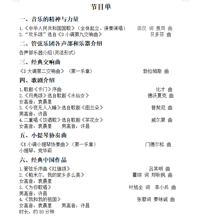 为深入贯彻落实党的二十大精神,扎实开展学习贯彻习近平新时代中国特色社会主义思想主题教育,全面加强和改进新时代学校美育工作,按照教育部、文化和旅游部、财政部有关“高雅艺术进校园”活动安排,校团委特邀中央音乐学院交响乐团到我校举办主题为“立德树人,美育启智”的专场音乐会,现将具体事宜通知如下:
