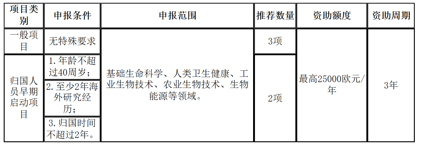 项目有关内容及要求等详见下表及网站(https://www.icgeb.org/activities/grants/)。