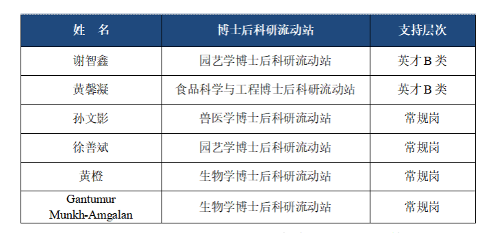 根据《东北农业大学全职博士后支持计划实施办法》(东农人字〔2024〕30号)的有关规定和要求,学校近期开展了2024年第五批全职博士后招收工作,经个人申请、学院遴选推荐、人事处审核,由学校2024年第6次人才工作委员会审议,2024年第16次校长办公会、3届186次校党委常委会审定通过,2024年第五批全职博士后招收共有6人符合进站条件,现将人员名单及支持层次予以公示:
