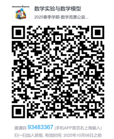 添加班级群:使用学习通APP扫描下方班级二维码,或者在APP里输入班级邀请码93483367。班级群名称为“2025春季学期-数学竞赛公益讲座班级群”。请务必添加此群,讲座相关事宜如有更改,将在此群里通知。