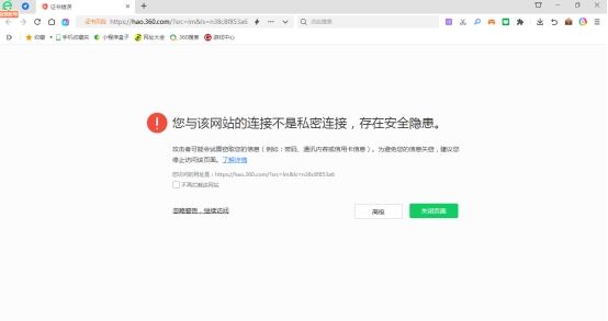2.360浏览器提示安全警告:点击忽略警告,继续访问可进入Web认证登陆界面。