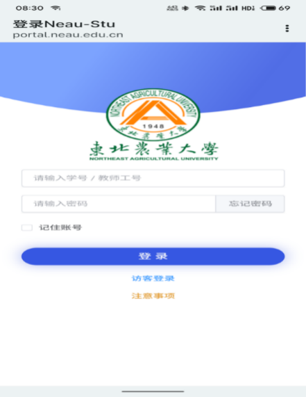 1.新生连接校园网前,请先访问https://authserver-443.webvpn.neau.edu.cn/进行统一身份认证账号首次登陆及修改密码(默认密码身份证后6位(其中X大写))。老生不用此步骤!