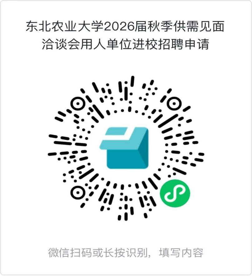 (一)进校招聘人员请务必扫码填写进校申请,建议从东北农业大学东门(化工路100号)或北2门(长江路600号)经门岗人行通道设备刷身份证后进入学校。自驾车进校人员需提前将车牌号进行报备,否则车辆无法进入学校。每家用人单位参会人员原则上不超过2人。