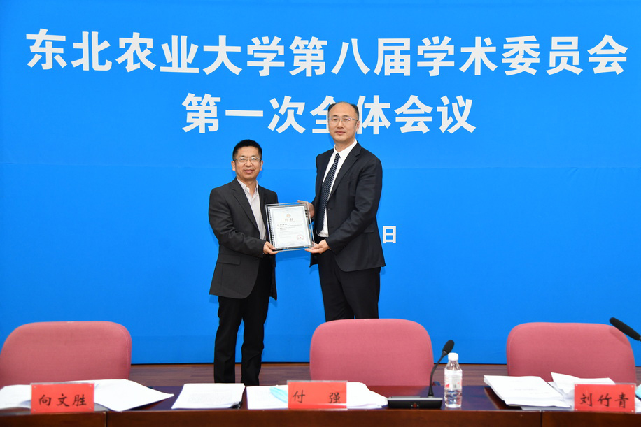 随后,按照《东北农业大学学术委员会章程》的相关规定,选举付强为第八届学术委员会主任委员,刘竹青、向文胜、张颖、姜毓君为副主任委员。