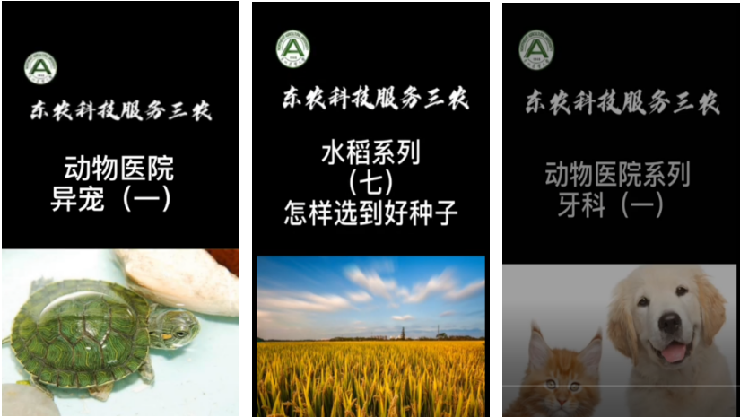 经过近两年的技术知识凝练和成果信息采集、田间地头生产现场的跟踪拍摄、剪辑配音特效动画的后期制作,截止目前,我校已累计拍摄完成水稻、大豆、玉米、马铃薯等大田作物、黄瓜、西甜瓜、番茄、辣椒、老山芹、蓝靛果等果蔬、生猪养殖、奶牛养殖、马铃薯播种、秸秆深埋、免耕等农业机械以及乳品加工、蜂蜜加工、宠物常见疾病等18个大类的农业科技成果专题短视频82个。