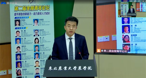 陈庆山在会上致辞,欢迎东北地区九所涉农高校相关学院领导及论坛报告人的参会,感谢各高校相关学院领导论坛的支持和配合。陈庆山表示,金陵青年论坛要引导青年教师以国家振兴为己任,树立远大目标,成就一番事业,在奔向第二个一百周年的征程中,牢记习总书记的嘱托,刻苦钻研,勇攀高峰,为国家的粮食安全建功立业。