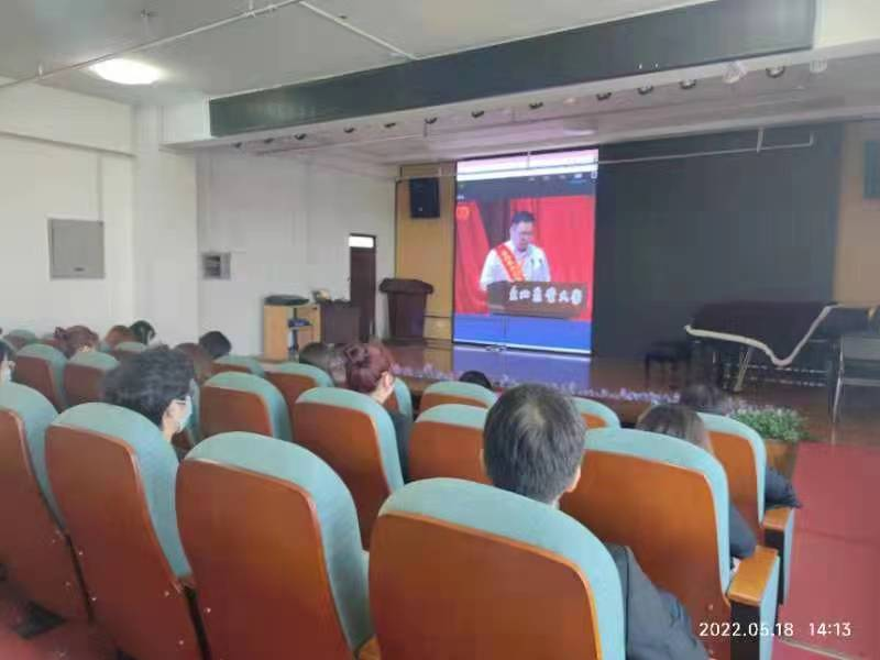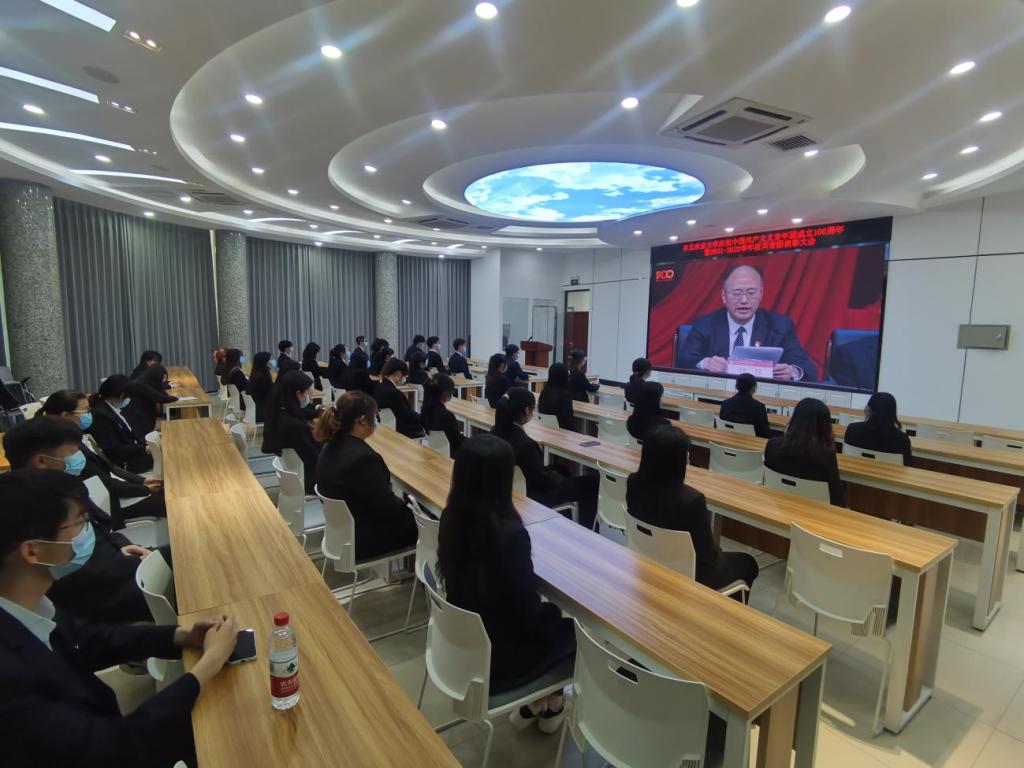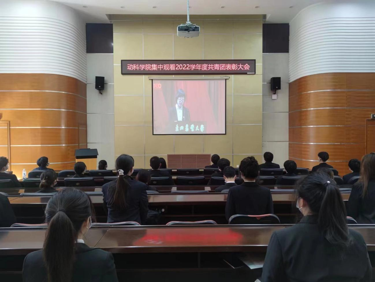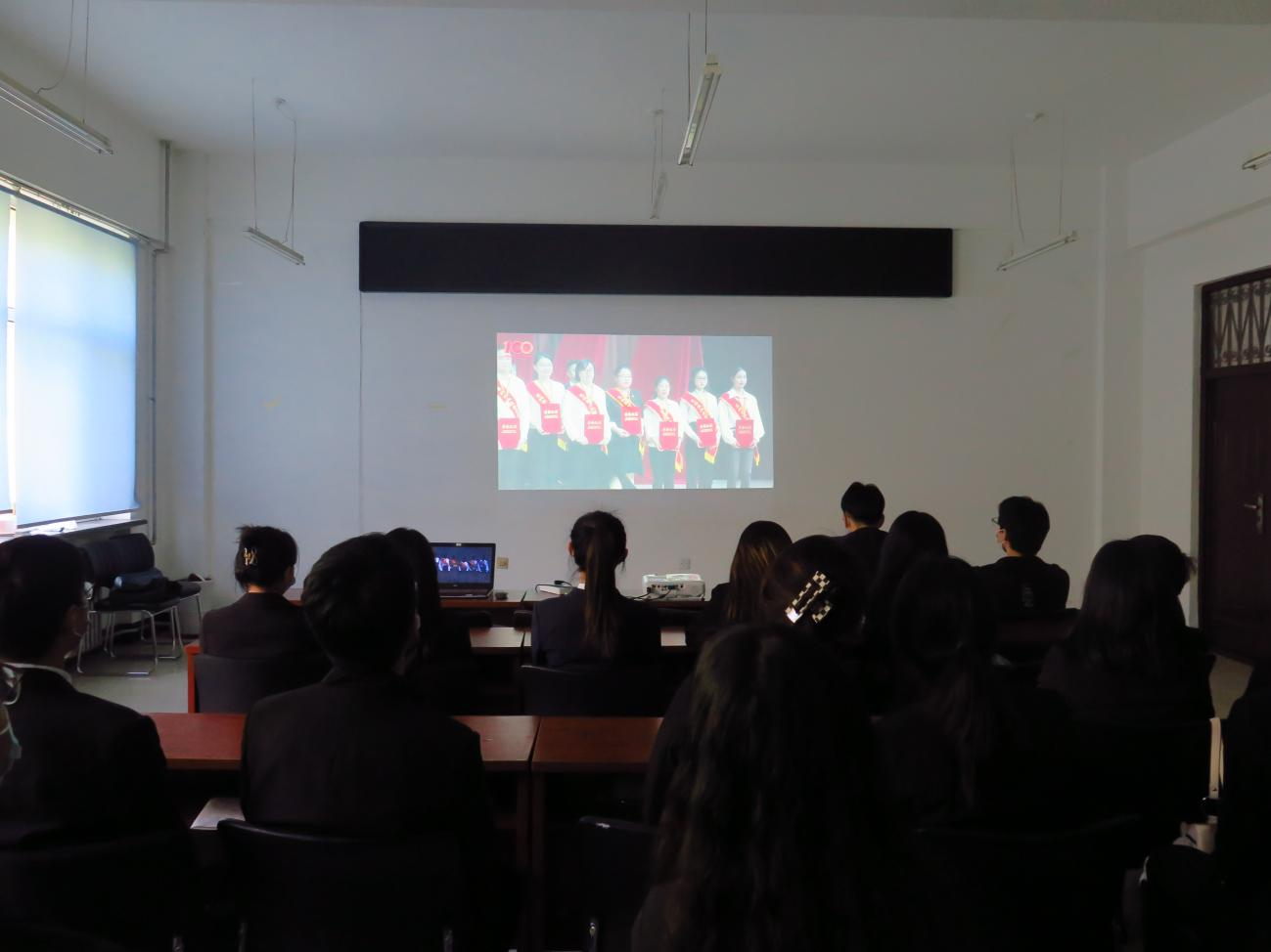 各学院师生代表在分会场观看庆祝中国共产主义青年团成立100周年暨2021-2022学年度共青团五四表彰大会。