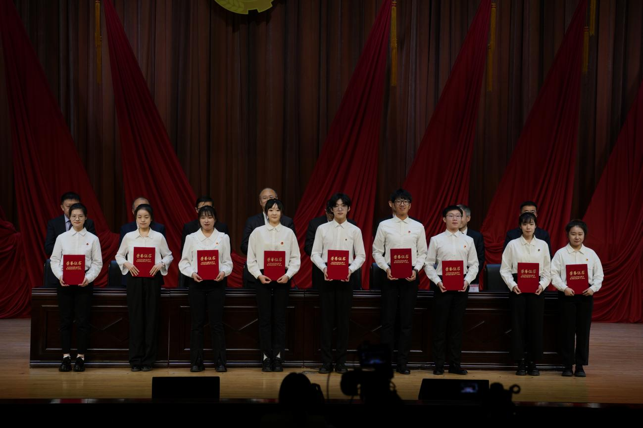 校领导为获全省青年大学习的先进集体和个人代表颁奖