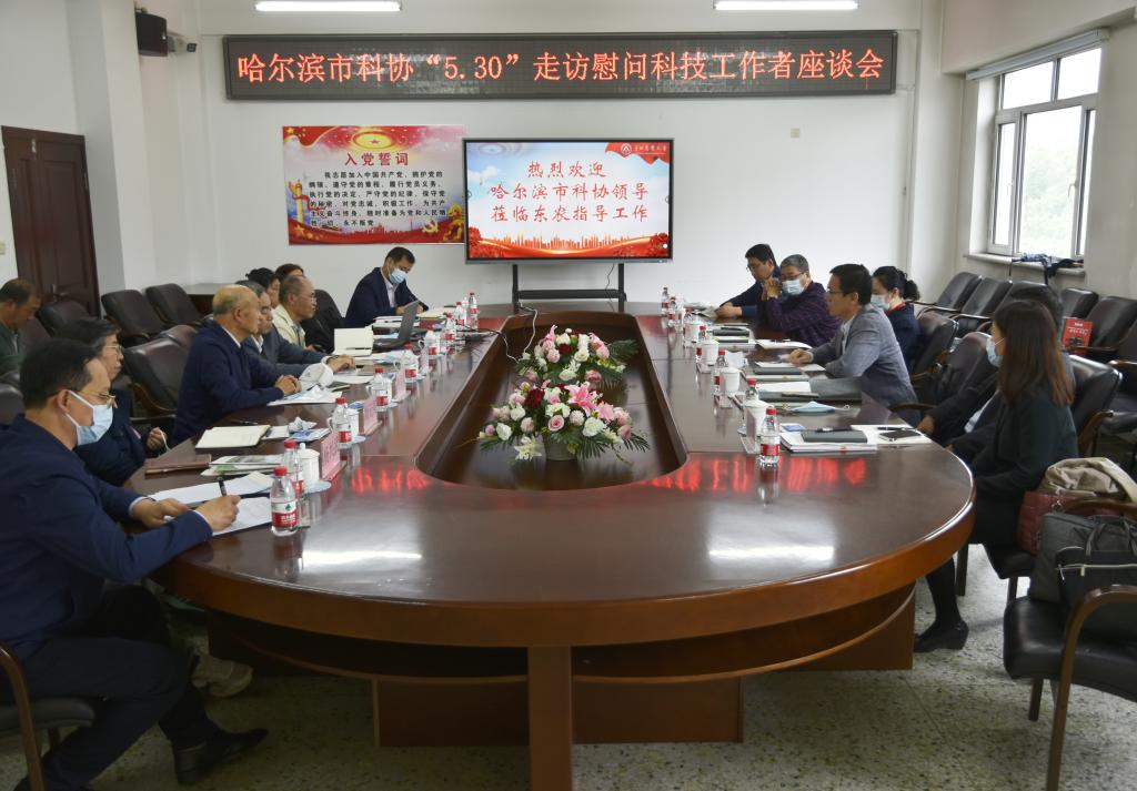 在第六个“全国科技工作者日”来临之际,为深入走访一线科技工作者,传递市委、市政府对科技工作者的关心关怀,鼓励引领科技工作者发挥聪明才智,为我市“七大都市”建设做出更大的贡献,5月25日,哈尔滨市科协党组书记、副主席徐广斌,专员杜晓琳,普及部部长崔凤山等走访慰问我校老科协和部分科技工作者。副校长孙占峰、新农村发展研究院院长朱志猛,校老科协协会会长王成贵、秘书长张俐出席会议。会议由离退休工作处党委书记、处长兼任学校老科协副会长李荣军主持。
