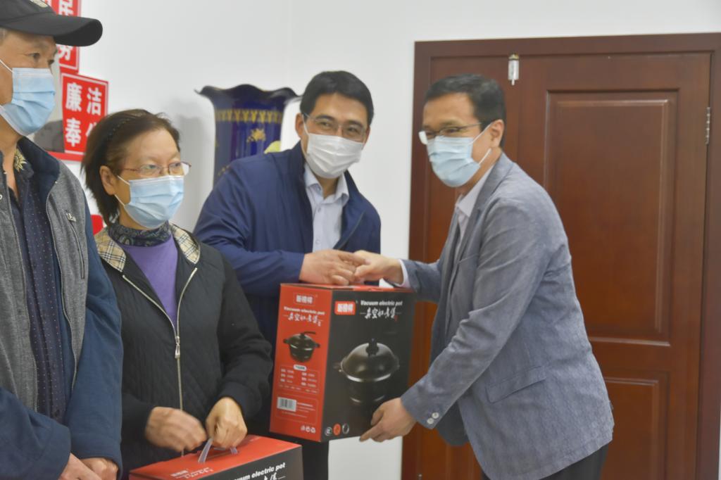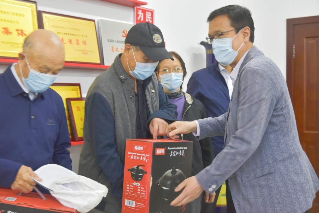 会前,徐广斌为园艺学院番茄领域专家李景富教授、农学院作物栽培领域专家魏湜教授、资环学院土壤肥料领域专家刘元英教授、资环学院应用微生物领域专家徐凤花教授、动科学院畜禽生产领域专家杨兴武教授,农学院党委书记、省大豆协会理事武小霞教授,园艺学院省高寒设施园艺重点实验室主任潘凯教授赠送慰问品。