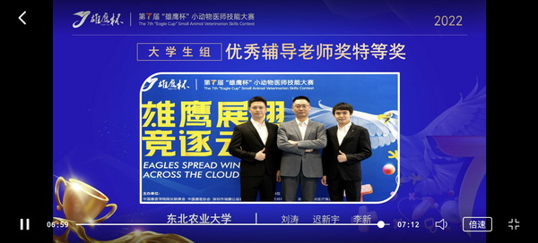 6月2日,第七届“雄鹰杯”小动物医师技能大赛总决赛闭幕式暨云颁奖典礼于线上举行。我校获得“团体特等奖”和“高校最佳组织奖”,我校动物医学学院韩秀臻同学获得“兽医新星”奖,迟新宇、刘涛、李新获得“优秀辅导老师”。动物医学学院王洪斌教授出席大赛并对本次大赛进行综合点评和技术点评,他指出,手术素养对于能否成为一个真正的好兽医很关键,应该通过比赛及时发现问题,解决问题,更好地去培养行业人才。他希望师各高校资队伍的教学环境和条件不断改善,让小动物诊疗行业能够发展得更好。