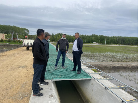 为持续贯彻落实习近平总书记考察建三江时重要指示精神,深入贯彻落实省第十三次党代会精神,进一步解放思想、更新观念、开拓创新、努力工作,积极发挥学校科技、人才优势,扎实推进“五大行动”,有效实施“示范引领行动”,打造现代农业高质量发展创新示范区,坚定不移推进农业现代化,助力龙江农业振兴发展。2022年,学校继续深化与北大荒农垦集团建三江分公司全面务实合作,紧紧围绕建三江现代农业发展需求,切实推进 “东农•建三江现代农业科技创新示范区”高效运行,助推建三江现代农业高质量发展、科技赋能现代化大农业。随着疫情好转,5月29日—6月2日,新农村发展研究院副院长宋珲带队,我校水产养殖专家尹海富副教授、蔬菜专家蒋欣梅副教授、新农村发展研究院建三江合作项目负责人孙文鹏等一行5人,就进一步解放思想、更新观念,将省第十三次党代会精神落到实处,继续深挖校企合作潜力,创新合作模式等工作开展校企合作深入对接与研讨,并对2022年校企科技合作项目推进落实情况赴各合作农场进行项目检查及需求调研。