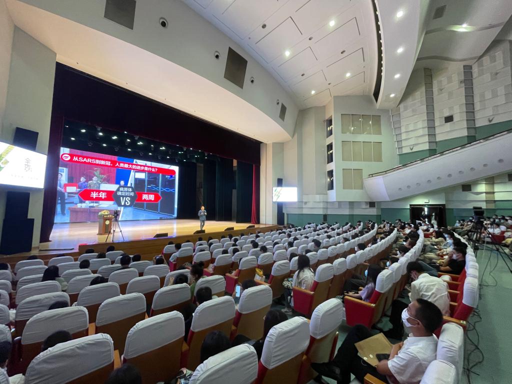 尹烨在《生命科学之美》专题报告中介绍了基因科学的前沿和自身思考,分享了在疫情防控工作中的经历和感悟,并就“听得懂的生命科学”“悟得出的生命觉知”“看得到的生命之美”等有趣的科学话题与师生进行了深入探讨。报告结束后,尹烨就有关问题和与会师生进行了互动交流,并为金陵讲堂题字留念。
