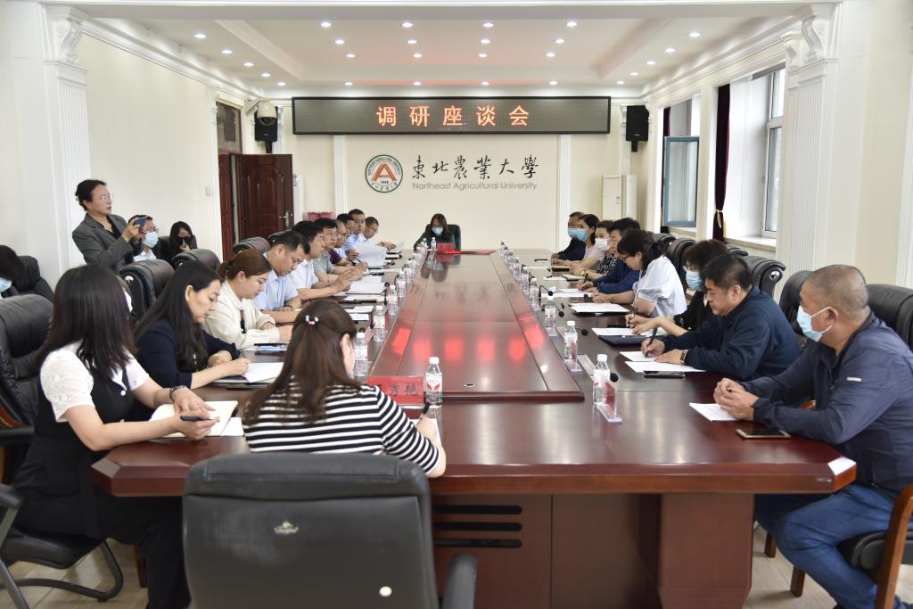 6月15日下午,香坊区委常委、副区长张磊,区委常委、宣传部部长刘莉、副部长陈衍璐,统计局局长邱爽,工科局副局长钱力,铁东街工委书记张震虎、主任文继峰、副主任冯志刚一行来我校调研科技成果转化、科研创新、人才培养、疫情防控等情况。我校党委副书记兼工会主席庞玉红、科学技术处处长寇胜利、新农村发展研究院院长朱志猛、园艺园林学院院长王傲雪、艺术学院院长刘丹及学校办公室、宣传部、学生工作部、保卫处、教务处等单位相关人员参加了调研座谈。会议在主楼604会议室举行。会议由庞玉红主持。