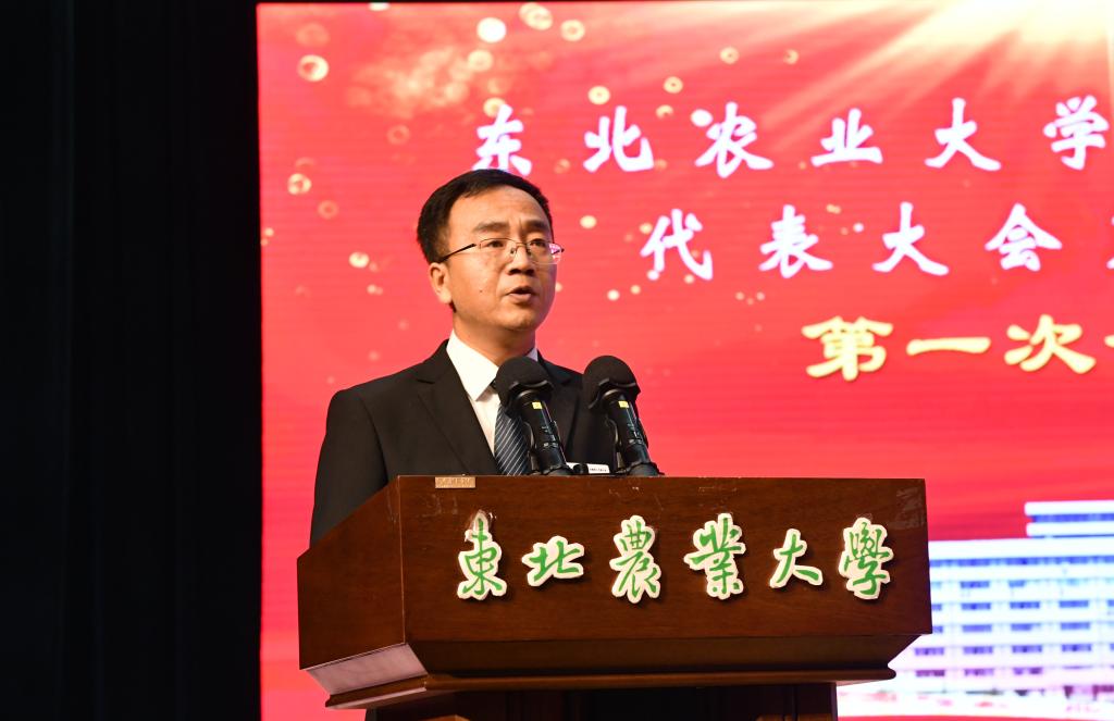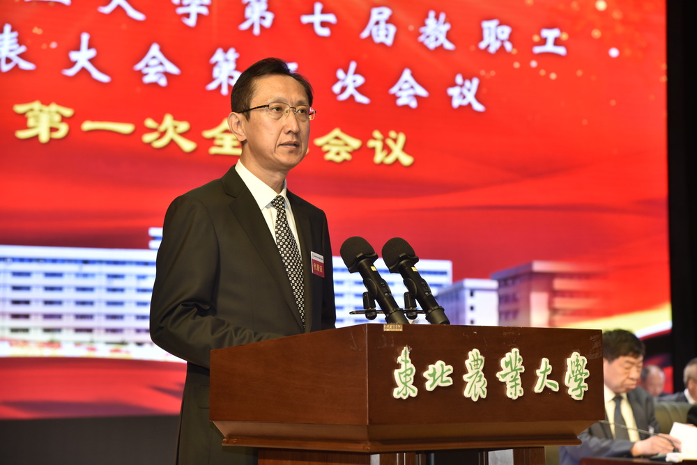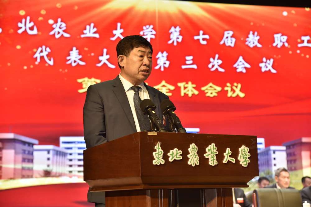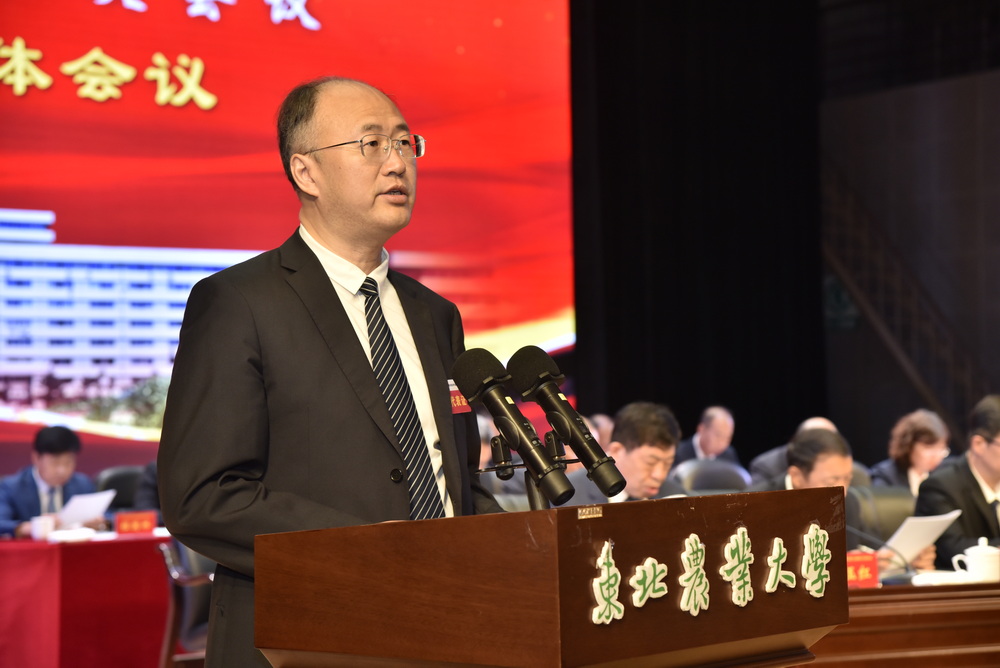 学校办公室主任王豫龙作《关于东北农业大学章程(修正案草案)》的说明,财务处处长李海成作《东北农业大学2021年度财务工作报告》。