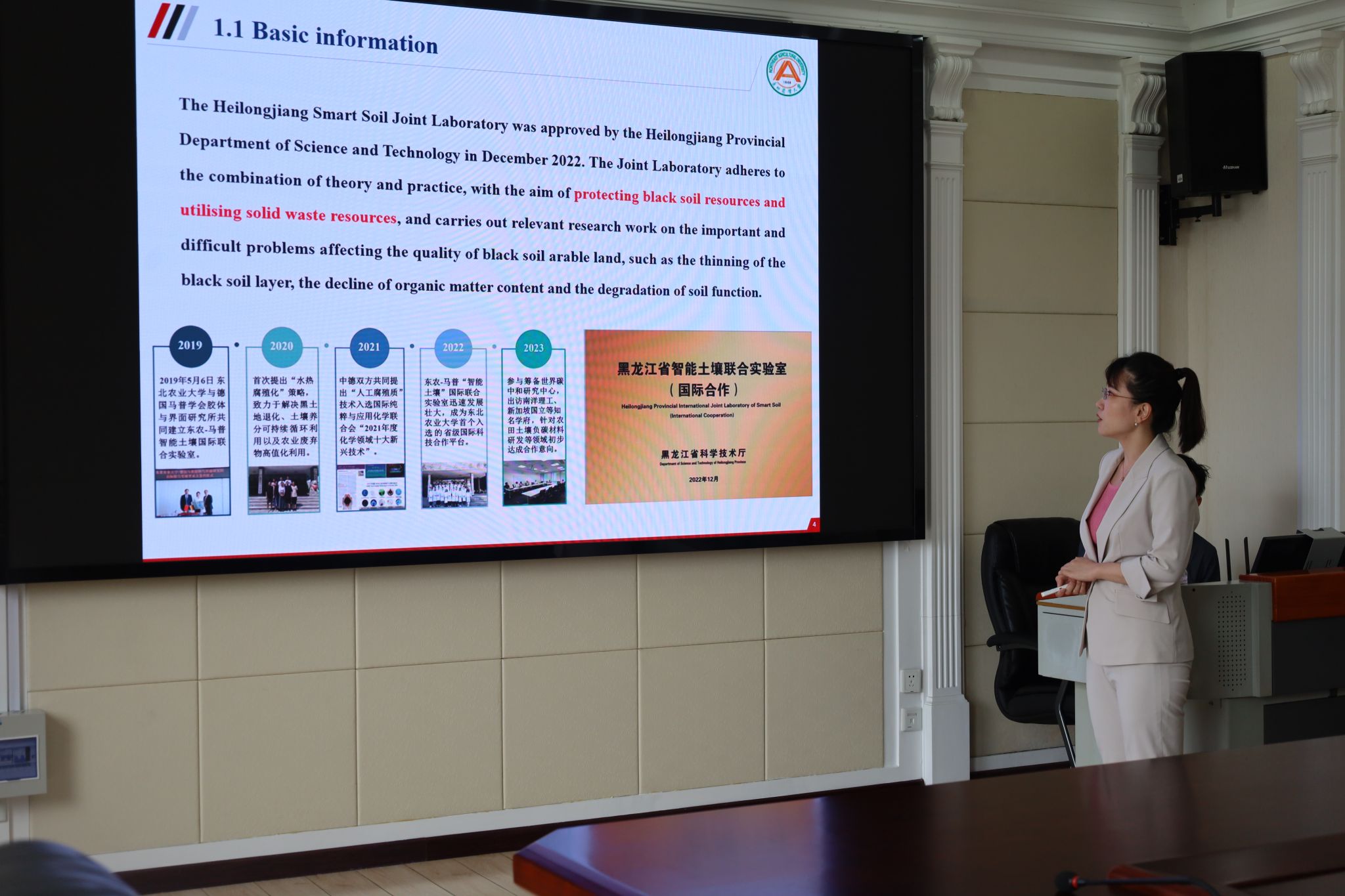 杨帆教授汇报了“黑龙江省智能土壤联合实验室”的发展进程,从基本情况、平台建设、存在问题和发展目标四方面介绍了实验室的前期建设情况和后期发展目标。
