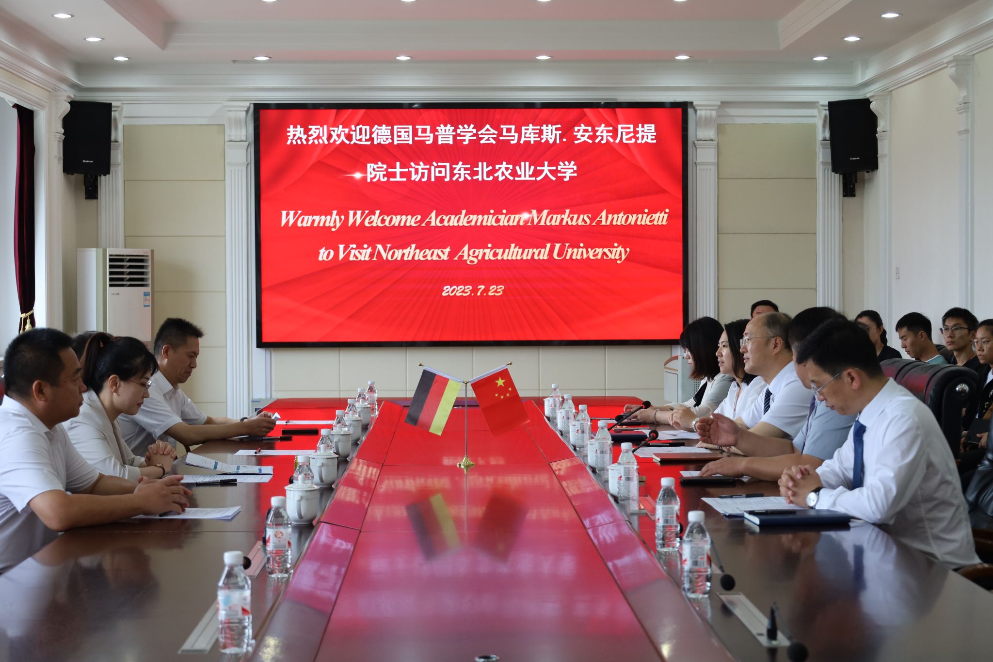7月23日上午,德国马普学会副会长,欧洲科学院院士马库斯·安东尼提教授来访我校,与校长付强教授在主楼604会议室进行会谈。会谈由国际交流合作处处长卢铁光主持,科学技术处处长寇胜利,水利与土木工程学院党委书记张索坤、院长刘东、教授杨帆,国际交流合作处副处长孙晔和其他15名“黑龙江省智能土壤联合实验室”成员师生一同参会。