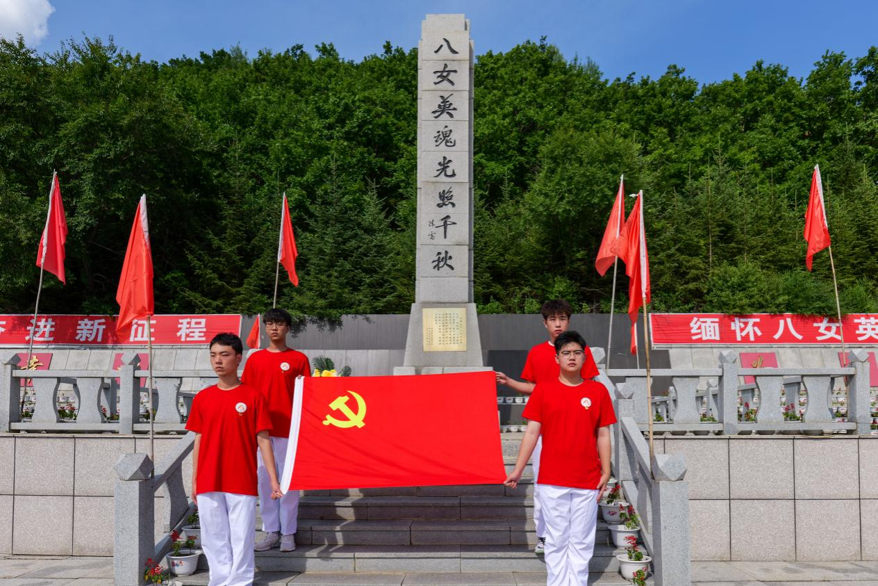 20日下午,我校师生集体参加了红色主题教育活动。在林口县文创产业园开展了调研活动,随后在“八女投江”遗址纪念碑广场开展了红色教育主题活动。全体成员瞻仰纪念碑,学生党员代表向纪念碑敬献花篮,全体党员在李卡的带领下重温入党誓词。