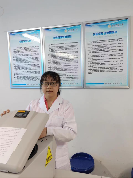 她爱岗敬业,承担本科实验教学的管理工作,为了让学院国家级本科实验教学示范中心更好地为全校师生服务,她逐个走访实验室,了解实验室运转情况,重新整理制定了实验室管理制度,实现每个实验室“制度上墙”;坚持“实验室安全重于泰山”,规范化管理实验中心危险化学品、高温高压仪器设备、气体钢瓶等危险源,排除安全隐患;摸清实验中心“家底”,组织清理回收废旧和过期试剂,报废超期服役等废旧仪器设备,落实新进仪器设备安装、启用,确保实验室管理的规范化、制度化、安全化。