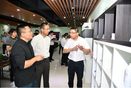 在东北农业大学国家级大学科技园,调研组一行共同观看了我校宣传片,并参观了科技成果转化陈列展,了解了学校围绕黑龙江省“4567”现代产业体系,在生物种业、生物肥料、生物兽药、生物循环农业、农机装备、新材料、食品加工、医药及现代服务业等方面可转化科技成果储备情况。