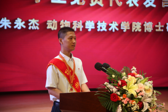 动物科学技术学院博士研究生朱永杰代表学生党员发言