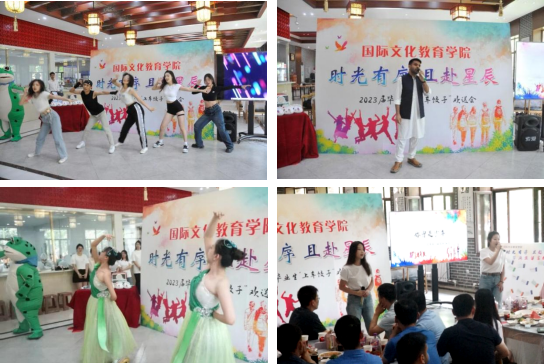 国际文化教育学院的“时光有序,且赴星辰”上车饺子联谊会上,开场舞《Anti-fragile》点燃全场热情;留学生带来的《贝加尔湖畔》独唱,异国的悠扬声音为大家留下了难忘记忆;古典舞《采薇》为现场师生带来优美的视听盛宴;两位毕业生合唱的《你曾是少年》,体现了毕业生对梦想的无限追求与憧憬。前路浩荡,奋斗伊始,愿2023届毕业生在下一个人生赛道上,百事顺遂,万事可期!