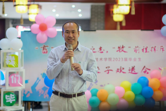 动物科学技术学院在饺子园举办“上车饺子”师生联谊欢送活动。学院优秀校友殷学中、侯春羽与张继华出席本次联谊会,学院领导班子全体成员、党支部书记、青年教师代表和全体辅导员到场为2023届毕业骄子送行。院长刘忠华与校友殷学中分别致辞毕业生,表达了对毕业生们的殷切期盼与美好祝愿。