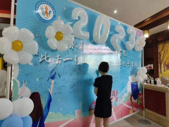 水利与土木工程学院开展“此去一程,山水永逢”送别2023届毕业生上车饺子活动。学院为毕业生制作了“签名墙”、“打卡墙”,旨在用光影点燃夏天、用镜头定格青春,毕业生们纷纷打卡留念,用一张张照片表达了水利学子对水利大家庭的眷恋和不舍。