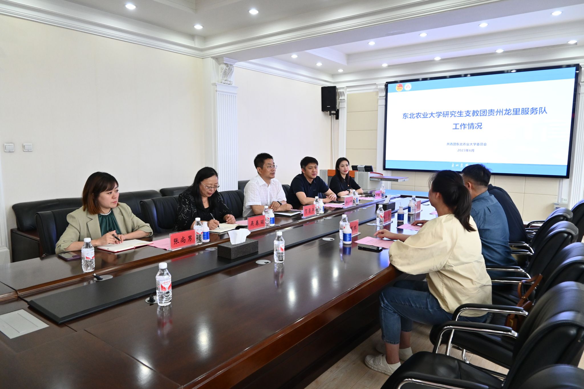 韩宇感谢学校的热情接待,并介绍了黔南州的基本情况,代表州委州政府对东北农业大学研究生支教团贵州龙里服务队十年支教工作表示感谢,并强调融合采访部要以龙里服务队为代表,深入宣传好东北农大研究生支教团的工作和成绩。韩宇还希望进一步拓宽校地合作领域,共同推动乡村振兴取得新的突破。