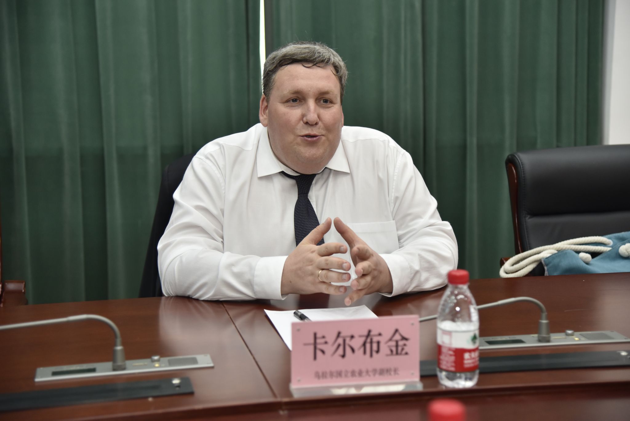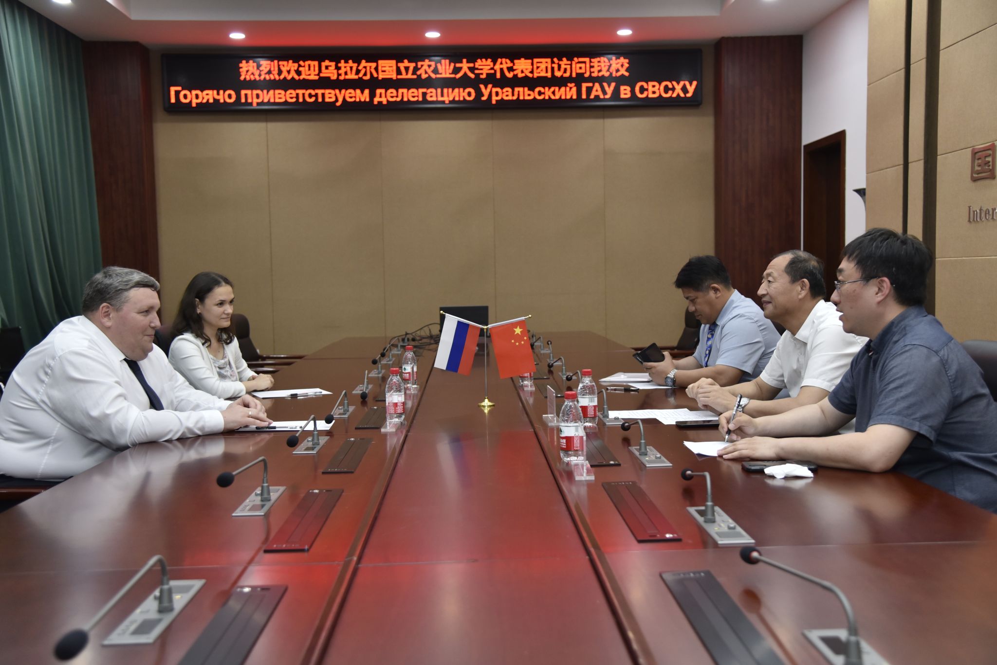 6月13日下午,俄罗斯乌拉尔国立农业大学科研和创新副校长卡尔布金·米哈伊尔·尤里耶维奇率代表团一行2人访问我校,副校长李伟凯与代表团在国际学院106会议室会谈交流。会议由国际交流处处长卢铁光主持。