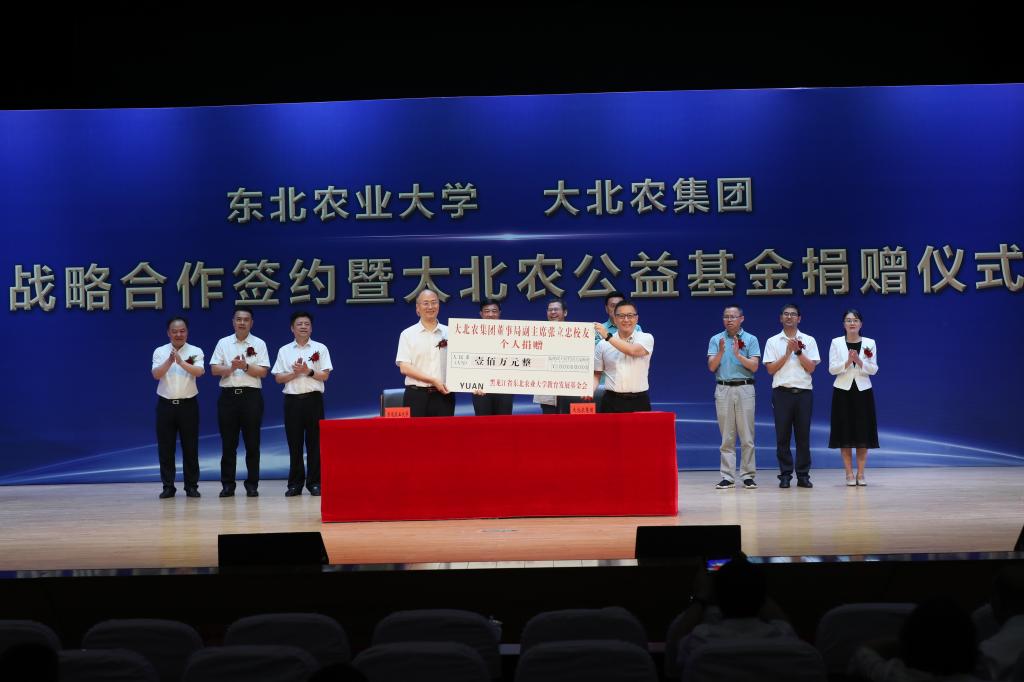 7月18日上午,东北农业大学与大北农集团战略合作签约暨大北农公益基金捐赠仪式在东北农业大学音乐厅举行。