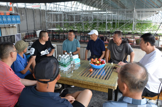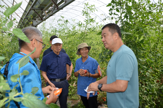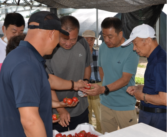 在番茄种植基地,潘忠、冯晓一行先后参观了种植大棚、育苗温室,并与企业负责人和管理团队进行了座谈交流,详细了解番茄品种、种植规模、长势产量等有关情况,并结合企业的实际种植情况,从预冷处理、冷链运输、产品销售等环节存在的问题进行了细致分析,并提出有针对性、可操作性的意见和建议。当得知,李景富教授从番茄播种、育苗、栽培等全过程给予企业技术支持,大家表示,以李景富教授为代表的东农老一辈科技工作者是支撑农业科技创新的宝贵财富,在各自的研究领域里退而不休、默默耕耘、无私奉献,为服务龙江“三农”和乡村振兴作出了积极贡献。