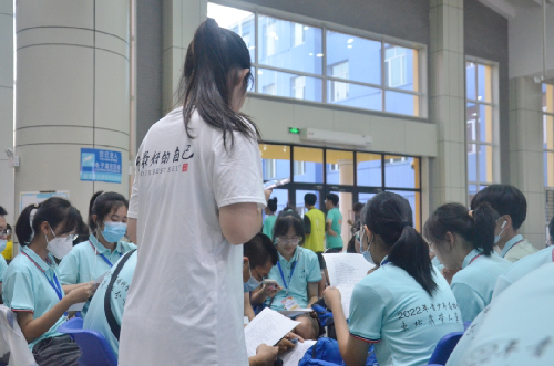校团委安排了55名随队志愿者,负责营员们在校期间的班级管理、后勤服务、活动保障、宣传报道等工作,开营仪式上,全体志愿者与营员们见面互动。
