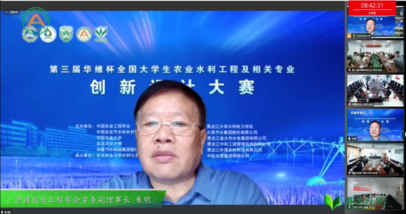 中国农业工程学会常务副理事长朱明研究员为本次大赛致辞,他指出全国大学生农业水利工程及相关专业创新设计大赛已经成为中国农业工程学会大学生“双创”大赛品牌活动中的精品活动,对大学生创新思维培养和农业水土工程学科发展发挥了重要作用,希望同学们以良好的竞技状态投入比赛,赛出水平、赛出风采、赛出风格、赛出成绩。