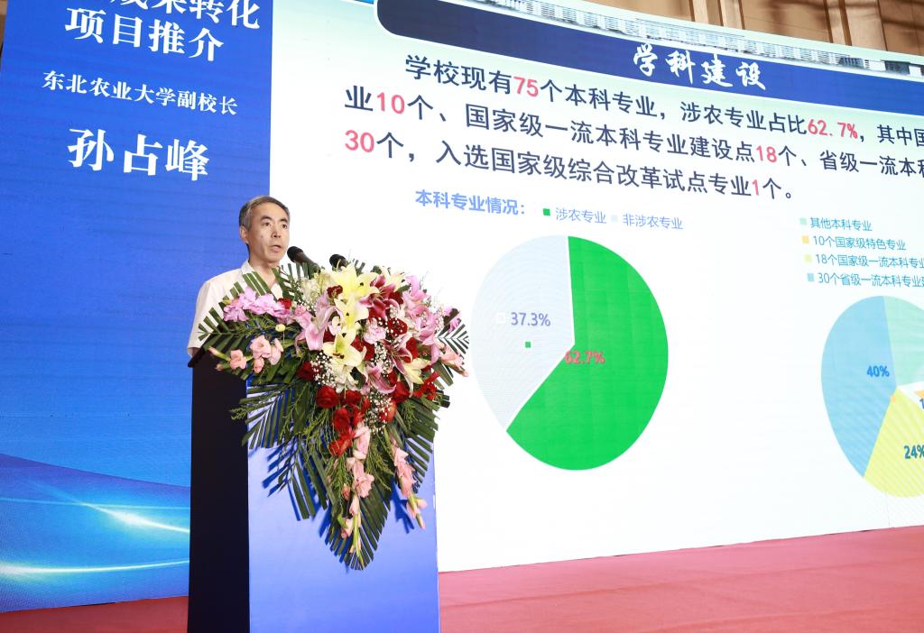 黑龙江八一农垦大学校长郑喜群进行科研成果转化项目推介