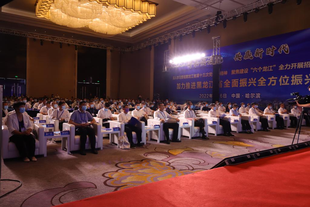 盛夏的哈尔滨,草木葱茏,生机盎然。8月6日上午,黑龙江省涉农高校校友企业家项目招商推介会在喜来登酒店隆重召开。黑龙江省副省长孙东生出席会议并致辞。省直部门、地方政府有关负责同志,150多家特邀企业、签约企业和校友企业代表,东北农业大学、黑龙江八一农垦大学、黑龙江农业工程职业学院、黑龙江农业经济职业学院、黑龙江农垦职业学院、黑龙江农业职业技术学院等6所涉农高校学校领导、相关部门和学院负责同志参加会议,部分校友企业家和6所涉农高校部分校友分会会长、秘书长、校友代表线上同步参会。我校校长付强主持会议。