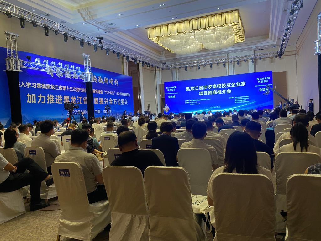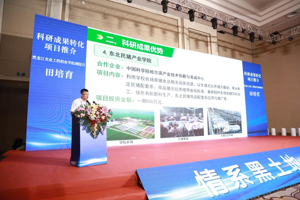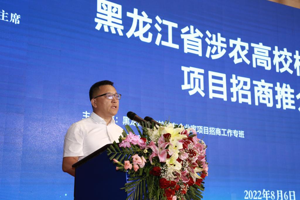 会上,进行了招商宣传推介和科研成果转化项目推介。省商务厅副厅长尤晓林,省农业农村厅二级巡视员尹文杰,哈尔滨新区管委会成员、松北区副区长孟祥伟,哈尔滨经济技术开发区管委会副主任、平房区常务副区长周国伟,黑龙江建三江国家农业科技园区管理委员会副书记郭锐依次作发言推介。我校副校长孙占峰,黑龙江八一农垦大学校长郑喜群,黑龙江农业工程职业学院副院长田培育分别进行科研成果转化项目推介。