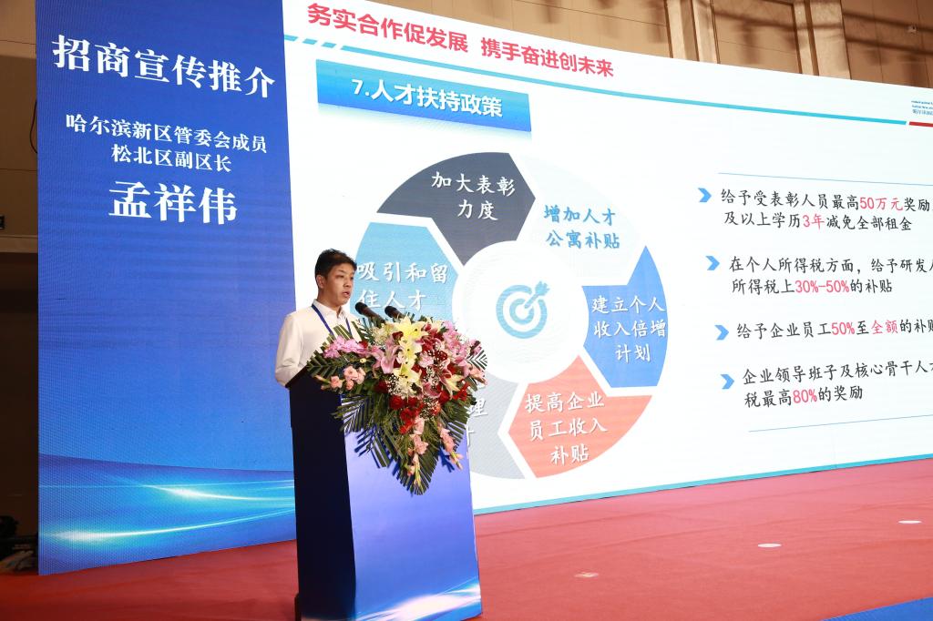 哈尔滨新区管委会成员、松北区副区长孟祥伟作招商宣传推介
