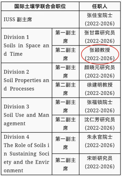 我校张颖教授当选为国际土壤学联合会第一学部副主席