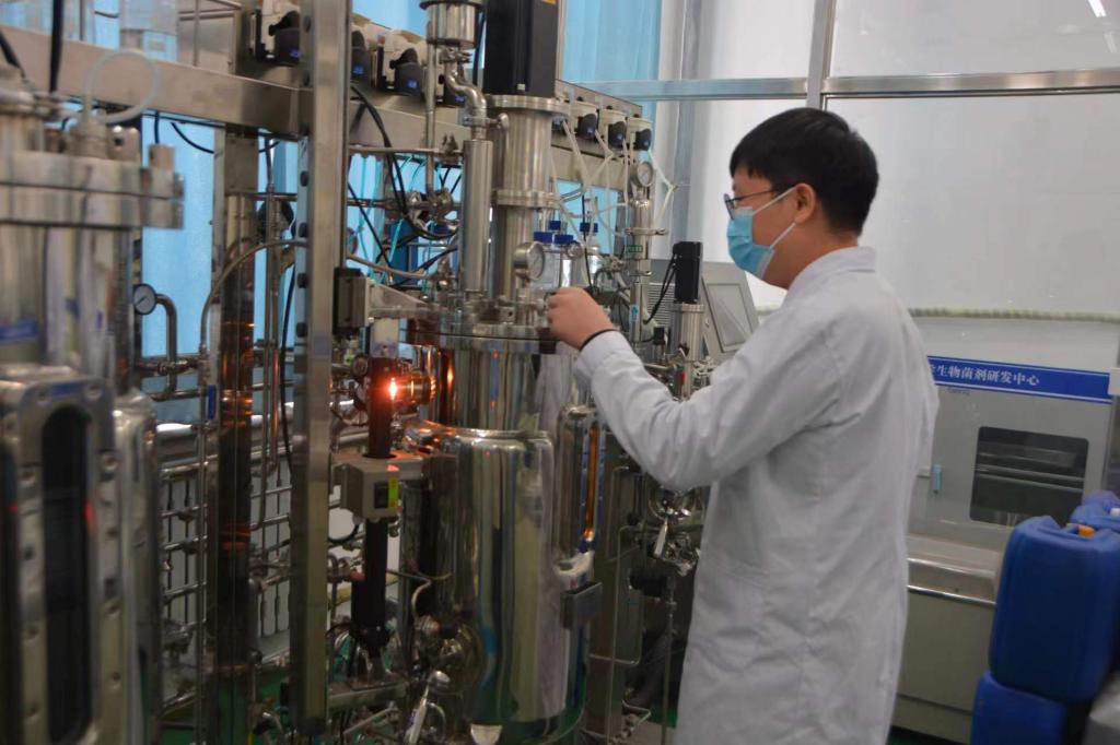 新备案的科学家工作室的研究人员在菌剂研发中心进行菌剂生产和监测