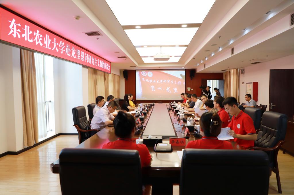 座谈会上,龙里县副县长胡伟谊代表县委县政府向东北农业大学一行的到来表示热烈的欢迎,同时也向东北农业大学长期以来对龙里县支教事业的支持表示衷心的感谢。随后,参会人员集体观看了第24届研究生支教团贵州龙里服务队近期工作汇报片,并由队长续航做贵州龙里服务队近期工作总结报告;研究生支教团成员邓熙维、张玉、刘昱彤、李嘉琪分别发言,分享了入黔一个月以来的支教感悟;团贵州省委、团黔南州委及龙里县相关负责同志分别进行了交流发言。