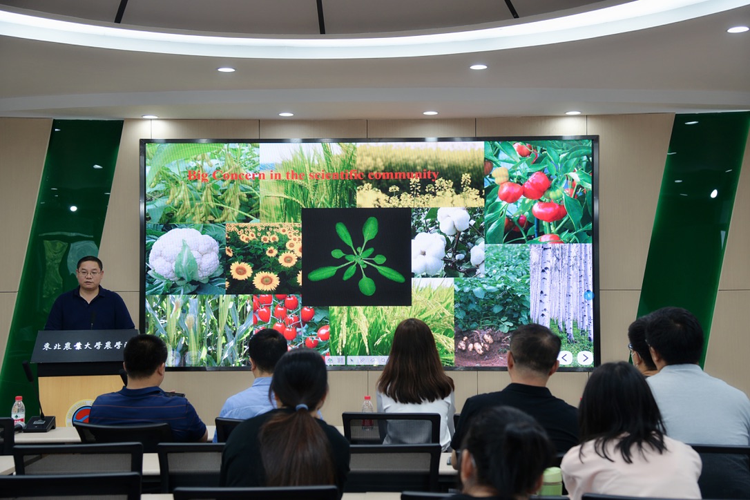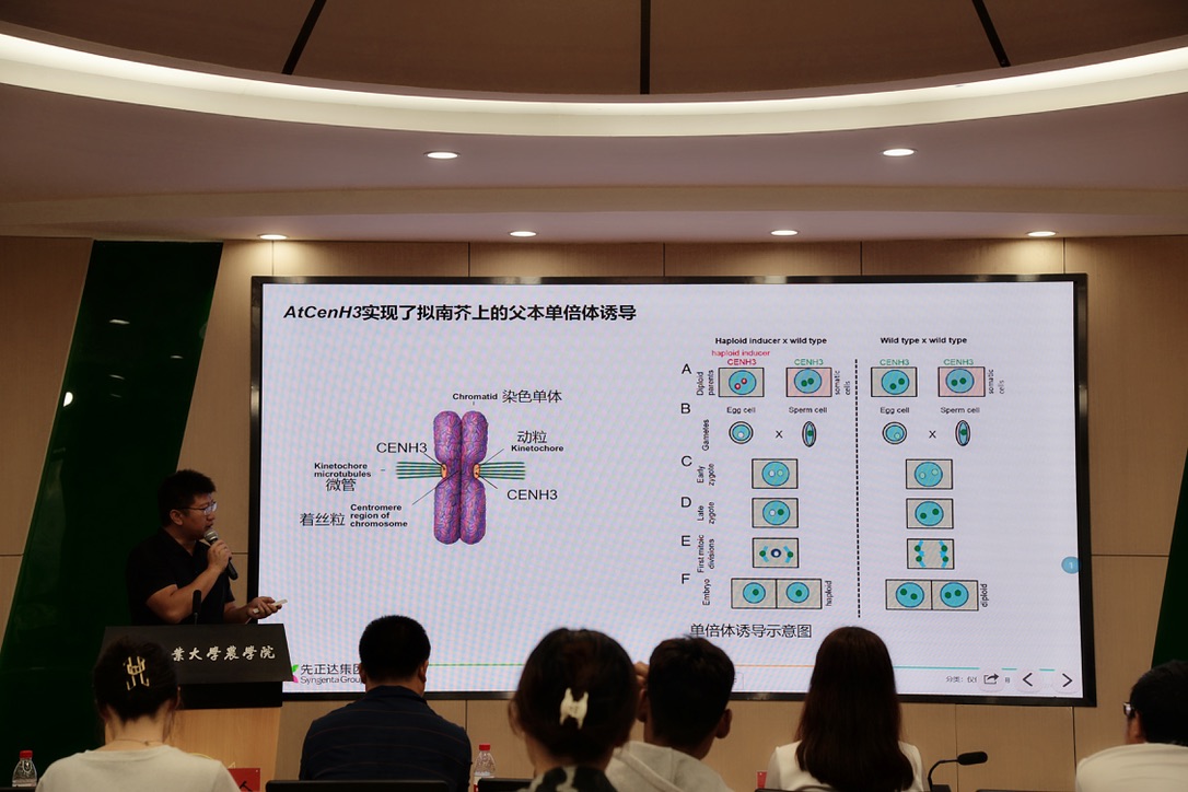 为推进产教结合,优化教学体系,加快高校科研进度与新时代农业人才培养工作。8月19日,农学院“金陵讲堂”第52、53期暨校外企业兼职导师聘用仪式以线上线下结合的形式在农学院多功能报告厅举行。先正达首席科学家吕建博士,中国农业科学院周焕斌研究员,我校研究生院院长刘世英、农学院党委书记武小霞、院长陈庆山、副院长王敬国及部分学院教师、学生代表线下现场聆听讲座。会议由武小霞主持。