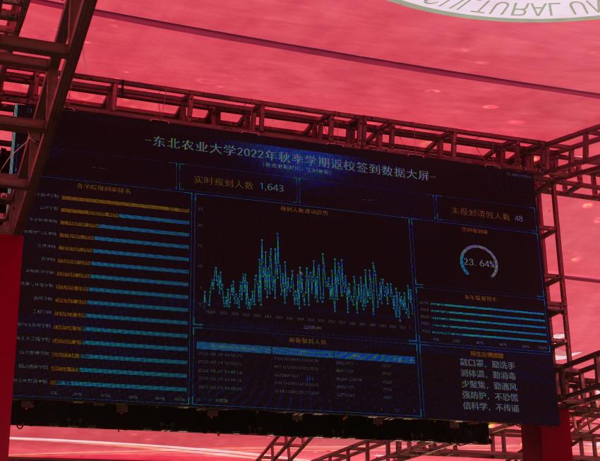 今年是学校继续应用数字化迎新的第8年,全新升级的迎新管理系统将新生问卷调查、报到资料采集、新生信息采集、绿色通道申请、入学安全教育等工作进行线上前置,学工部提前谋划,精心设计,依托“今日校园”APP,开通新生健康打卡、疫苗接种填报、住宿用品订购、军训服装采集等10余项流程,新生可通过网络远程填报各项资料,更能及时收到学校相关通知。通过系统,学生可提前获知班级、寝室等信息,通过填报报到方式、时间、乘车区间、是否接种疫苗等信息后完成预报到工作,报到当天即可扫码快速完成入学手续办理,大大方便了新生提前融入校园生活。同时,迎新现场还搭建了数字迎新展示大屏,实时监控迎新系统数据,通过酷炫的统计图表、新颖的统计视角,实时展示整个新生报到工作的进程。