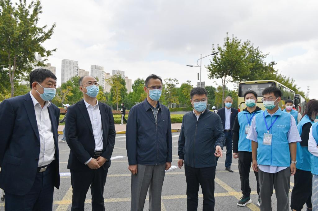 校党委书记李长生、校长付强、校党委副书记兼工会主席庞玉红、副校长刘晓峰走访迎新现场