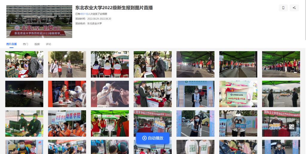 为了使新生家长“零距离”了解学生在校报到情况,弥补不能到校内看看的遗憾,学校采用多种形式报道迎新工作实况,学生工作部通过图片直播的方式对本次新生报到校内各点位的实时画面进行全景展示。截止目前,图片直播平台共发布图片500余张,累计观看人数70余万,点赞2千余次。