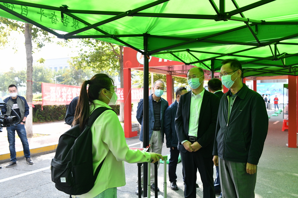 在迎新现场,李长生、付强一行对新生报到流程、志愿服务、疫情防控、核酸检测、交通管理等工作进行了详细了解。走访了少数民族学生服务站、绿色通道服务站、退役士兵及征兵政策服务站和志愿者服务站,了解我校学生资助工作的整体情况和志愿者工作情况。校领导还逐一慰问了全校16个学院的新生接待点,驻足了解各学院迎新工作进展、新生报到情况和暖心服务工作,并对各学院扎实有效、别具匠心的做法给予充分肯定。